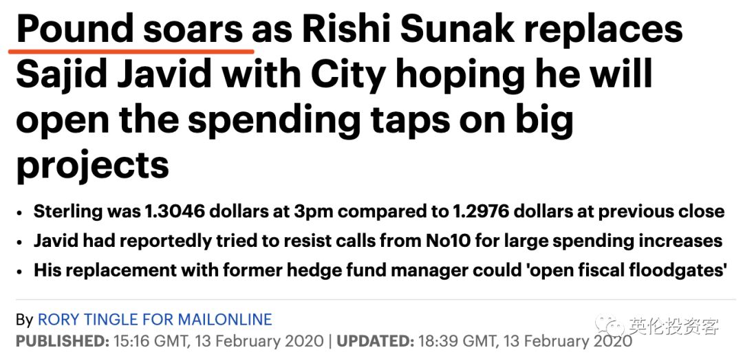 情人节前一天(2020年2月13日),英国首相鲍里斯·约翰逊对其领导的内阁进行了一场大换血:不仅一连串的大臣接连被辞退,连英国政府名义上的二把手——财政大臣贾维德(Sajid Javid)也被迫下台。贾维德请辞后,鲍里斯完全毫无挽留的意思,马上就任命了年仅39岁的印度裔苏纳克(Rishi Sunak)出任英国新任财政大臣。1980年出生的苏纳克于2014才步入英国政坛,2015年当选议员,仅用5年时间就成为了英国的二号人物,这晋升速度简直是坐上了火箭。许多人可能没有想到的是,7个月前的苏纳克还只是一个初级住房部长,而后他被任命为财政部的首席秘书,又在贾维德被迫下台后临危受命,出任英国史上第二年轻的财政大臣(仅次于38岁当上财相的奥斯本)。苏纳克接任财相后的第一个任务,就是准备3月11日发布的预算案(只剩不到四周了)。届时,英国政府将宣布一系列财政和税收新政,其中就包括可能出台中国投资者关心的海外买家税。今天这场内阁重组,除了最重磅的财相换人,鲍里斯还把原北爱尔兰大臣Julian Smith、原商务大臣Andrea Leadsom、原住房和规划国务大臣Esther McVey、原总检察长Geoffrey Cox在内的等一系列重臣开除出了内阁。值得一提的是,英国新内阁的四大重臣里,有两位是印度裔,分别是刚上任的财相苏纳克和鲍里斯非常器重的内政大臣帕特尔。另外商务大臣Alok Sharma也是印度裔。对于这场惨烈的内阁重组,《每日电讯报》将其形容为“情人节大屠杀”(Valentine 's Day massacre),《卫报》更评价其为国师卡明斯发动的一场政变,目的是为了拿下财政大权。工党影子财政大臣约翰·麦克唐奈也对此评论称,卡明斯已经成为真正掌控英国财政部的那个人。《镜报》也在今天刊出讽刺性封面,称鲍里斯已经沦为卡明斯的提线木偶。内阁重组结束后,特别是财相换人后,英镑突然迎来一波大涨。至于本轮英镑上涨的原因,主要是因为前财相贾维德与头号军师卡明斯在政府财政支出方案上存在巨大的分歧。对比贾维德的谨慎态度,卡明斯希望英国政府采用扩张性的财政政策,即大幅增加政府公共支出并投入基建项目(类似于投资基建拉动GDP)。从英镑的角度来说,如果英国采用宽松且激进的财政政策,那英格兰央行未来降息的可能性将大幅降低,英镑也因此应声上涨。接下来我简单讲讲鲍里斯为什么要如此大规模地清洗内阁。首先在换财相这件事上,有一个细节大家需要特别注意。据英媒报道,今天早上贾维德来唐宁街上班的时候,其实心情很不错,他根本没想到首相正准备对自己下手。后据贾维德接受BBC采访时透露,在最后的摊牌时刻,首相给他提了一个条件:只要解雇自己手下所有的特别顾问,并改用首相府的顾问代替,他就能保住财政大臣一职。面对这样架空自己的要求,贾维德表示任何有自尊心的部长级官员都不会接受这样的条件,于是主动请辞。消息人士透露,鲍里斯之所以提出这样的要求,是因为贾维德和首相府的高级顾问卡明斯之间的矛盾已经不可调和。贾维德去年夏天出任财政大臣以来,多次与卡明斯发生冲突,特别是在前文提到的财政政策方面。在贾维德和卡明斯之间,鲍里斯已经到了不得不二选一的地步。从结果来看,鲍里斯又一次站在了卡明斯这边,直接要求贾维德放掉权力,做一个听话的傀儡财相,以此来逼迫贾维德辞职。而在贾维德走人后,鲍里斯迅速任命了39岁的苏纳克。这样一来,首相府顺利实现了对财政部的完全控制,从而得以不受阻碍地施展各种财政刺激政策。关于贾维德,他肯定是有能力的,出生于草根的他完全靠自己的能力当上德银的董事总经理,并靠政绩在政坛步步高升,但无奈最终因为政治理念和卡明斯不同,只能黯然出局。接替贾维德的苏纳克在能力上不一定更强,但肯定够听话。目前苏纳克已经完全接受了鲍里斯和卡明斯的安排,让首相府的顾问团队入驻了财政部。