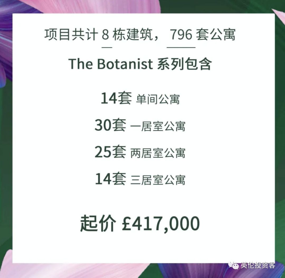 一居室: 面积51平方米起,价格47万英镑起,约412万人民币两居室: 面积71平方米起,价格61万英镑起,约534万人民币三居室: 面积96平方米起,价格67万英镑起,约590万人民币