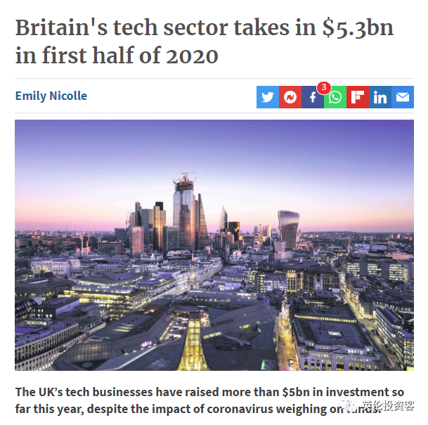 Tech Nation称,尽管新冠疫情给经济带来冲击,但在2020年上半年,英国的科技企业仍然获得了超过50亿美元的投资,比欧洲其他地区的总和41亿美元还更多。