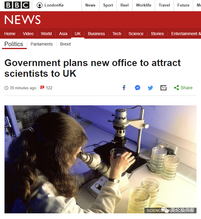 BBC:英国政府成立人才办公室,吸引科学家来英