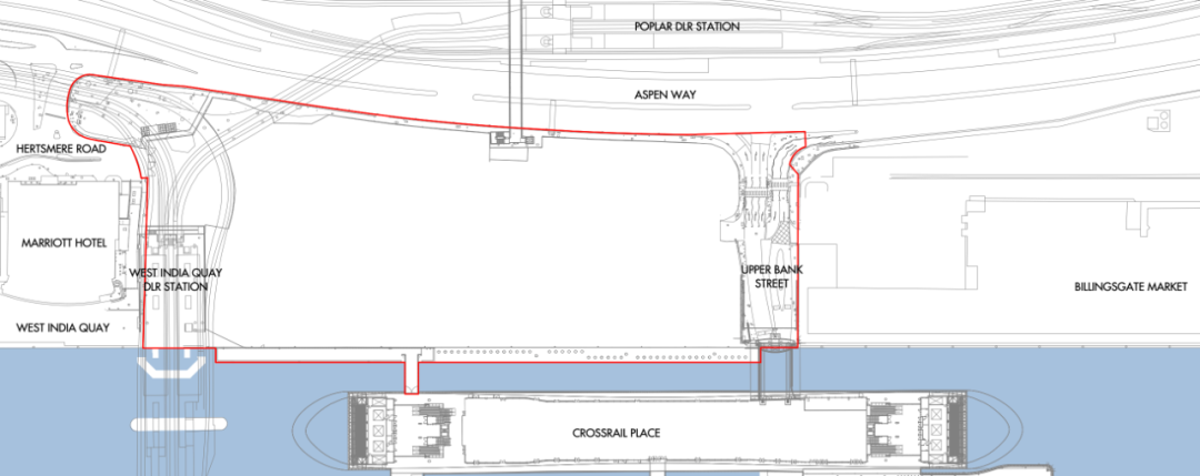 该地块北边是Aspen Way,西边是万豪酒店,东边是著名的伦敦海鲜市场Billingsgate Market(已确定将搬迁至Barking)。