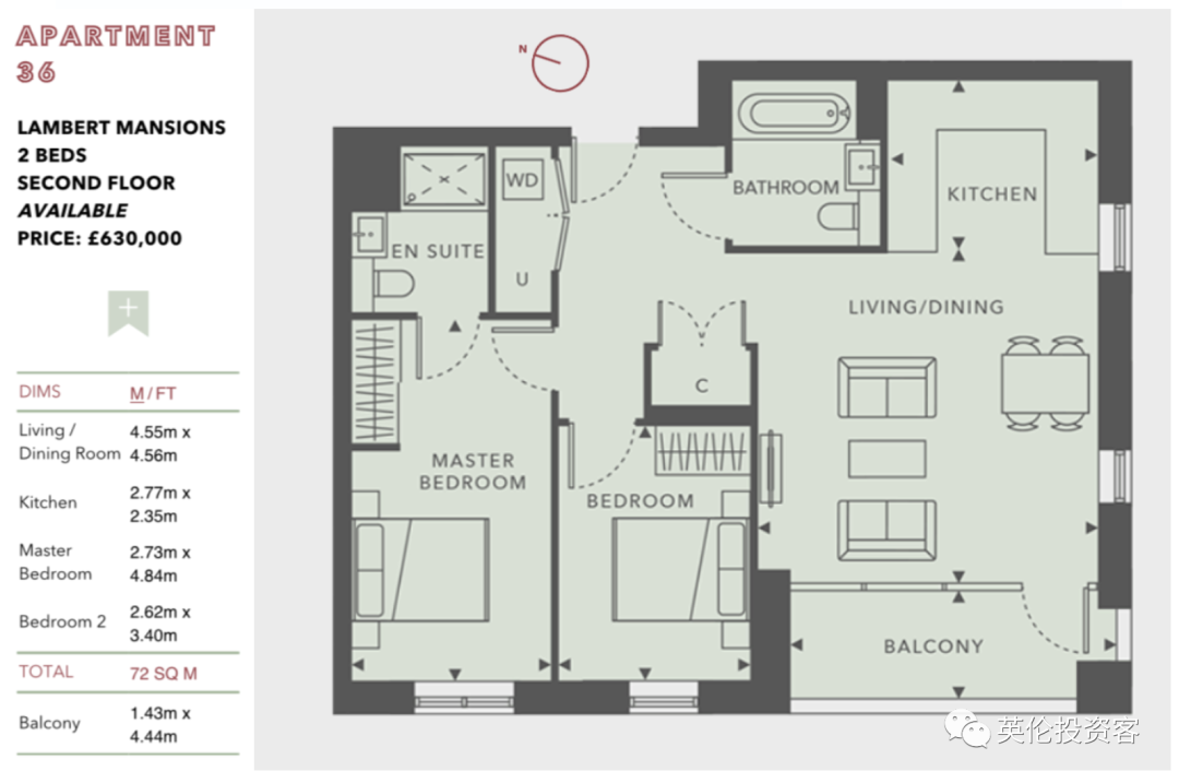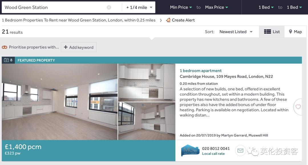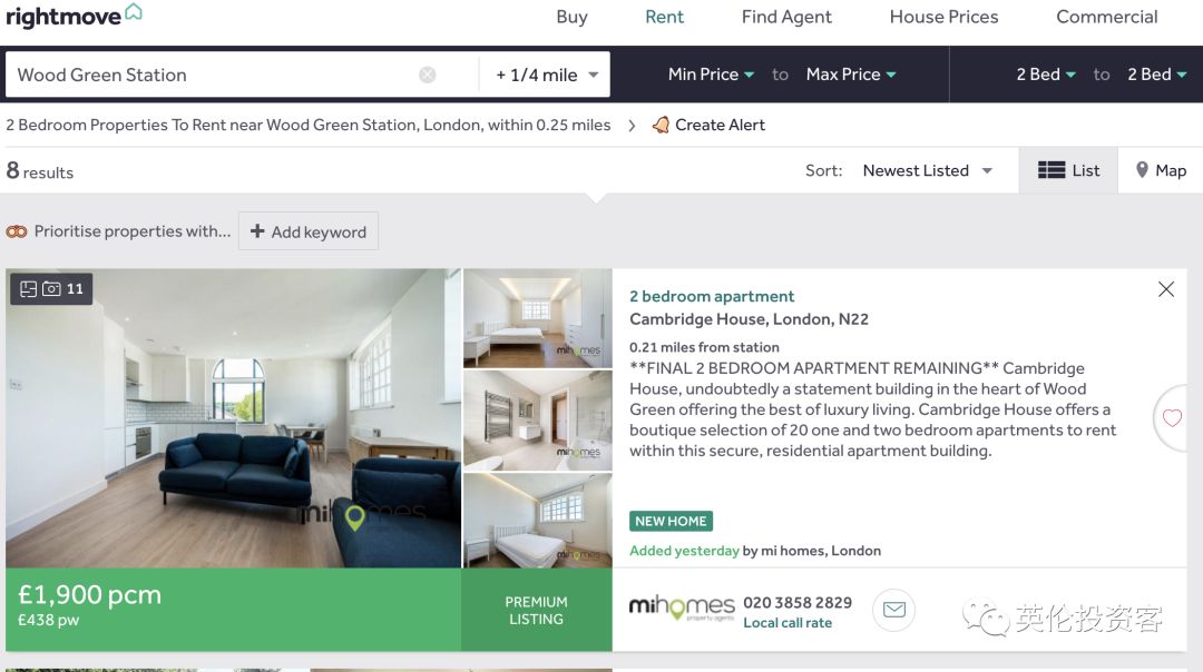 租金方面,项目以周围别墅为主,房屋较矮,供应不足,Rightmove显示一房租金约1400-1600英镑左右;二房租金约1900-2000英镑左右。