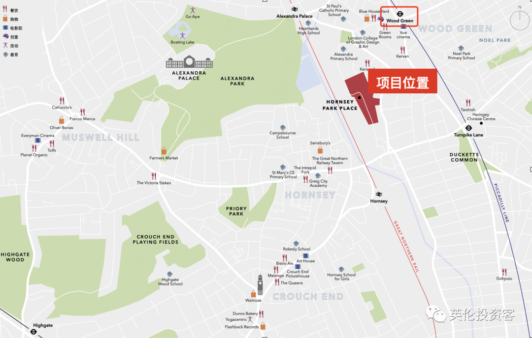 项目旁边就是Wood Green地铁站,坐地铁六站(13分钟)就能到达谷歌、脸书总部所在的国王十字核心区。