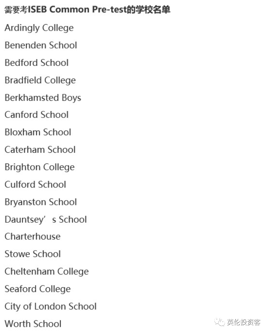 有的学校需要提交 ISEB 测试成绩,以下是部分例子:
