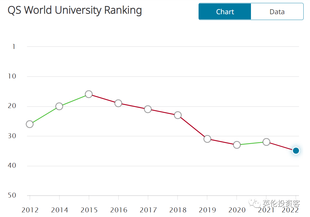 数据显示,伦敦国王学院的排名有所下滑,从去年的31下降至今年的35名。![]()