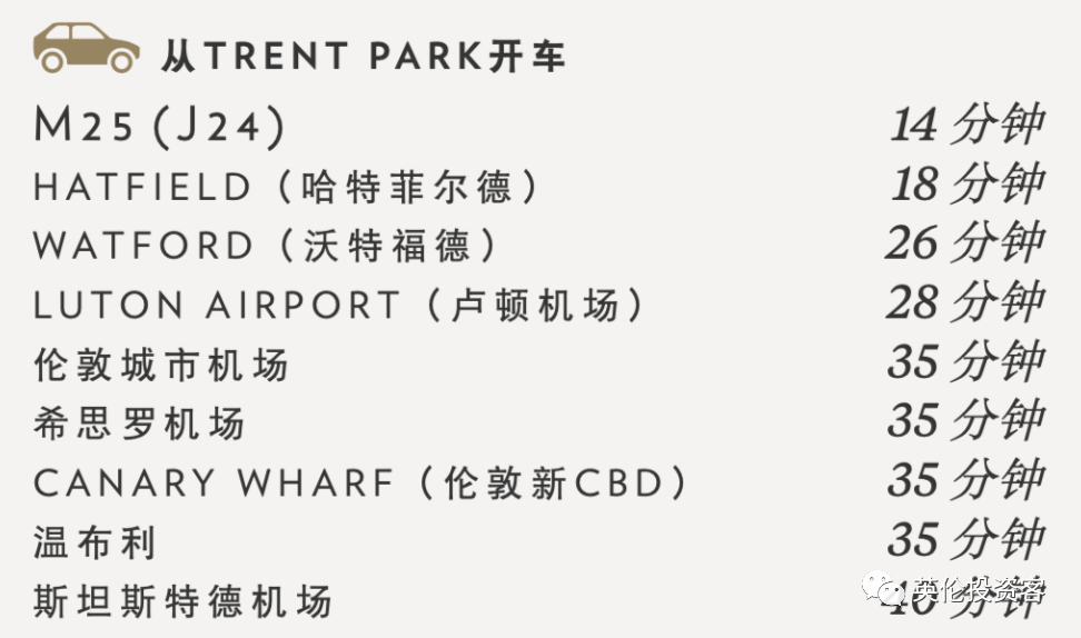 而开车的话,项目距离M25高速公路仅3.4英里,10分钟车程就能开上M25公路。