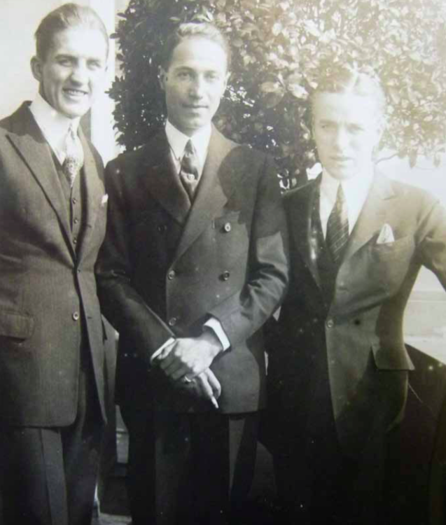 ▲ 菲利普•萨松爵士(中)和查理•卓别林(右)