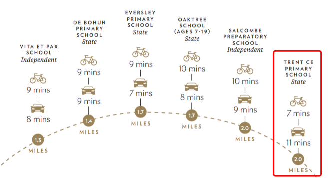 距离项目骑行7分钟,即可到达最近的小学 Trent CE Primary School。