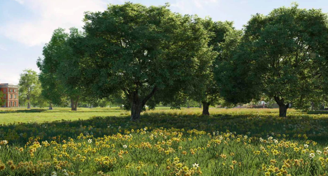 园林景观方面,菲利普还种植了一百万株水仙花,即著名的水仙花草坪。