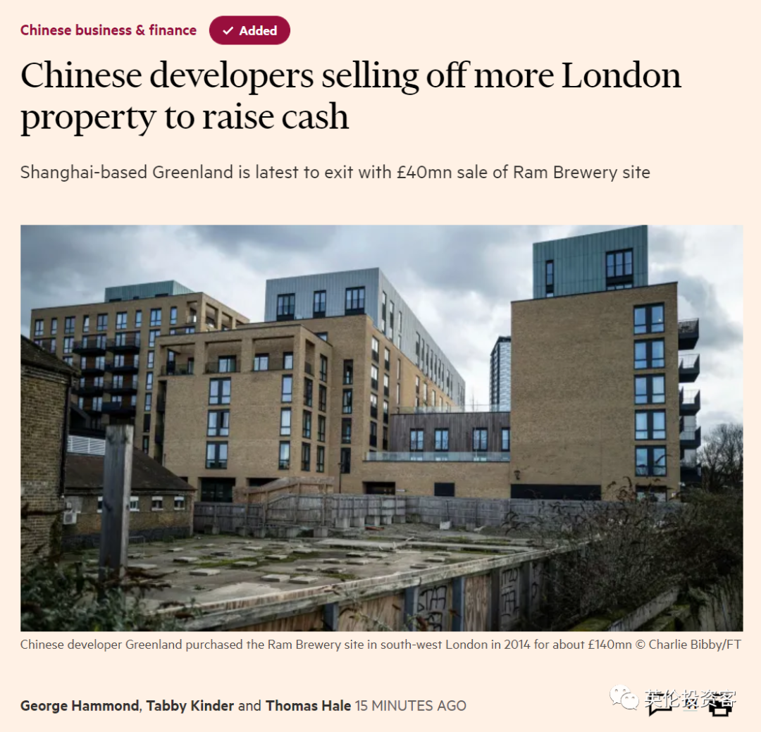 第一个进入英国伦敦市场的中国开发商,刚刚卖掉了旗下首个伦敦项目。据《金融时报》(2022年2月11日)最新报道,来自中国上海的开发商绿地集团已经以约4000万英镑(约3.44亿人民币)的价格,将位于伦敦西南部Wandsworth的住宅开发项目——兰姆公馆(Ram Quarter)未完工部分,出售给了英国上市开发商伯克利集团(Berkeley Group)。这一最新消息意味着,绿地将正式退出兰姆公馆项目的未来开发,而伯克利收购剩余地块后,将继续投入更多资金进行开发建设。对于这笔交易,绿地英国首席执行官表示,绿地将保留对该兰姆地块已完工部分(约300套房)的控制权,并补充称期待与伯克利St George合作,助力该地区的长期发展。![]()
