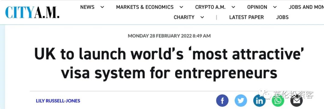 《伦敦金融城早报》:英国将推出全球“最具吸引力”的企业家签证制度