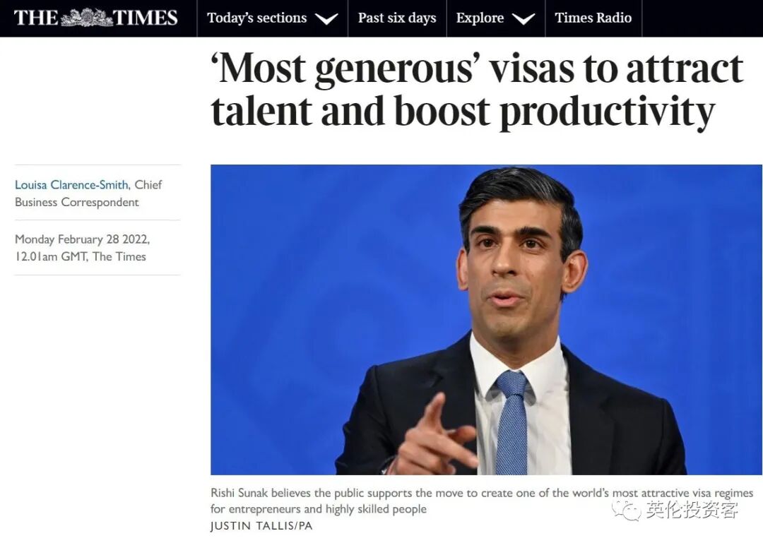 《泰晤士报》:英国即将推出“最慷慨的签证”,为吸引人才和提高生产力