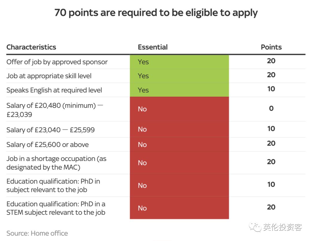 值得注意的是,英国已宣布在脱欧后采用澳大利亚式的积分制移民系统,新积分制满分为100分,移民必须达到70分才能拿到签证并在英国工作。