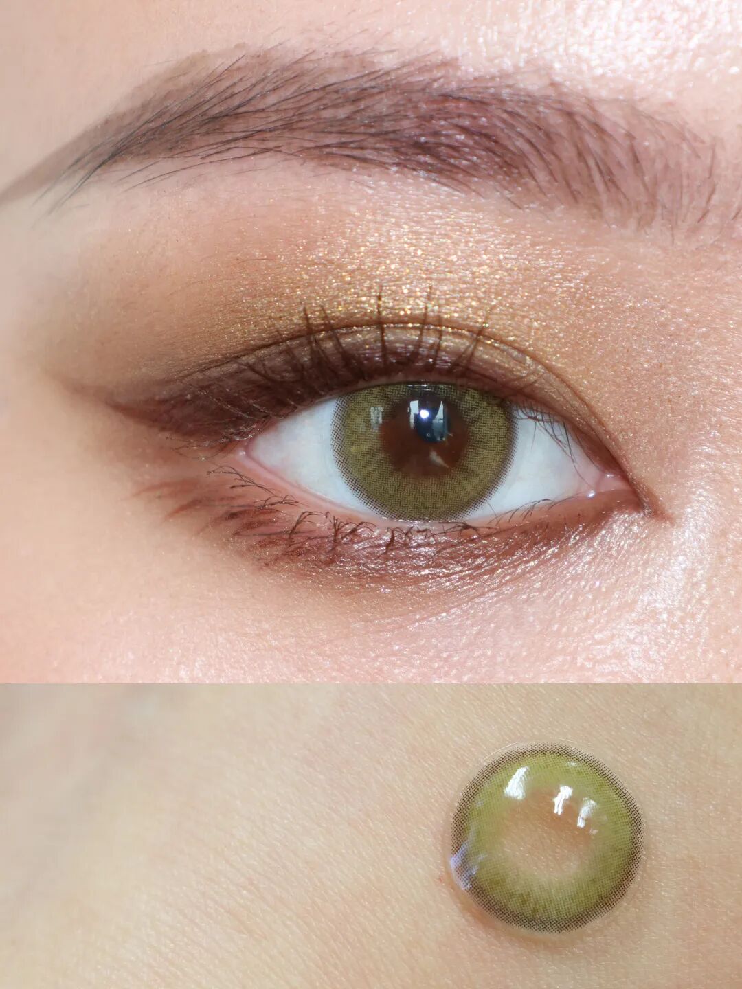 因为我本身瞳孔是深棕色,搭配一个带点黄的美瞳,就能让我的瞳色看起来绿一点。所以我选择了lemonade-lime,它家这款我之前回购了好几次,戴上眼睛几乎没啥异物感!
