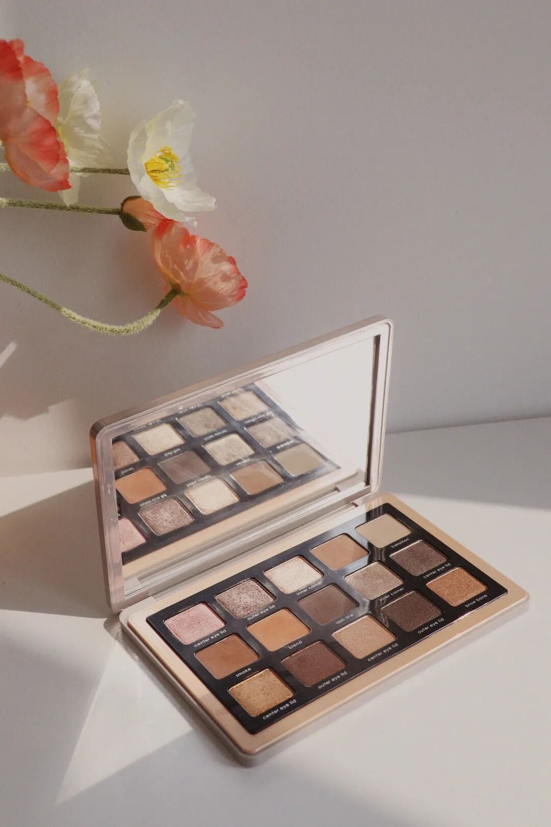 既然要调整有难度的“曲奇白巧克力”妆,怎么说也得要拿出好用到飞起的眼影盘。我往眼影收纳柜一看,第一眼就相中了“老网红”Natasha水泥盘,它的配色是为爱玩妆的博主定制的吧?