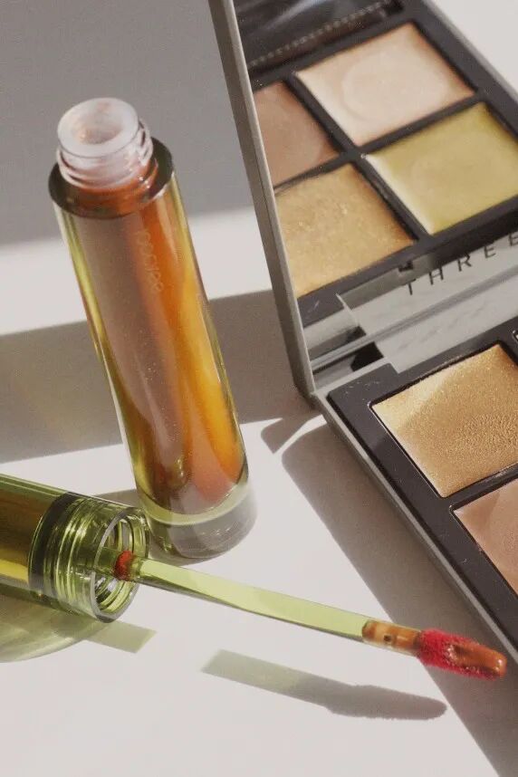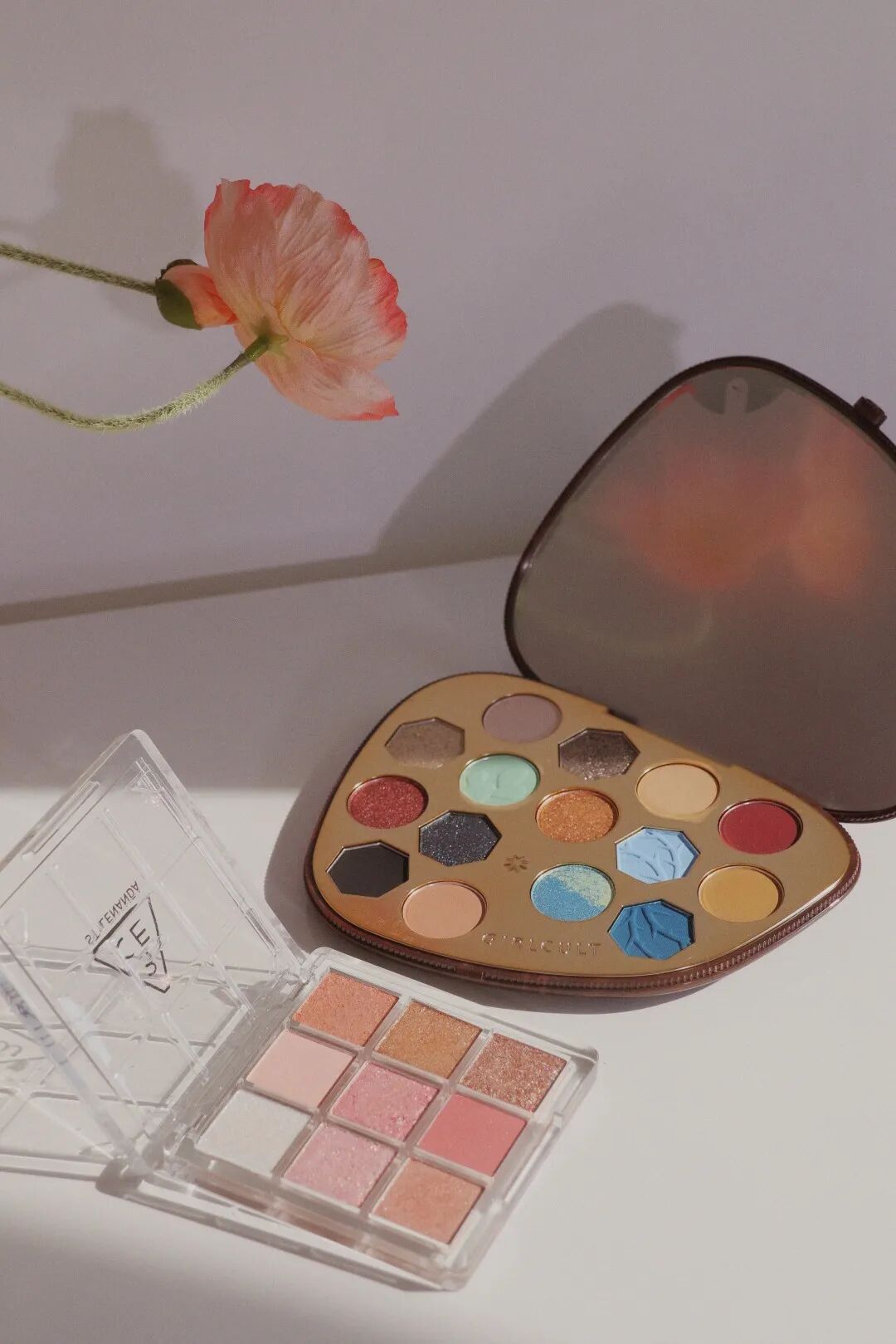 像是THREE和SUQQU家的眼影,别看它们颜色鲜艳,但饱和度和显色力没那么高,打造清纯的温柔感十拿九稳。而且它俩的粉质非常细腻,延展性都不错,是好晕开的质地。
