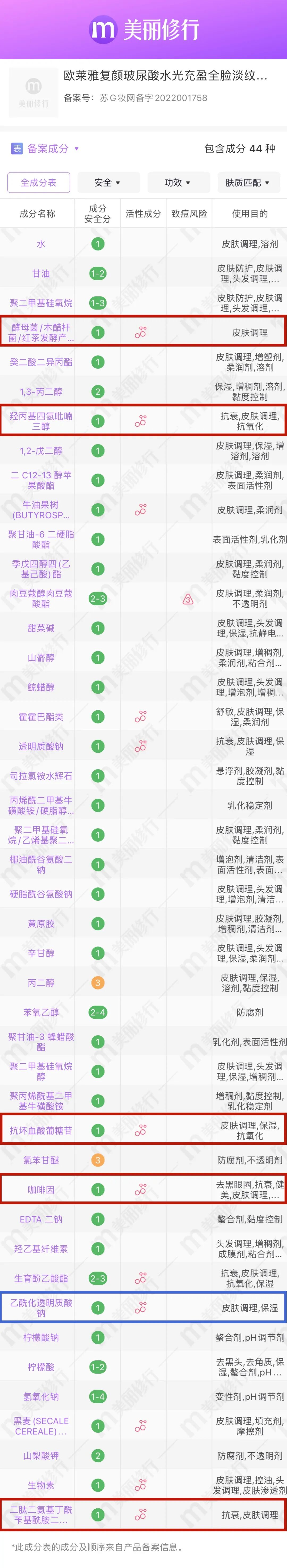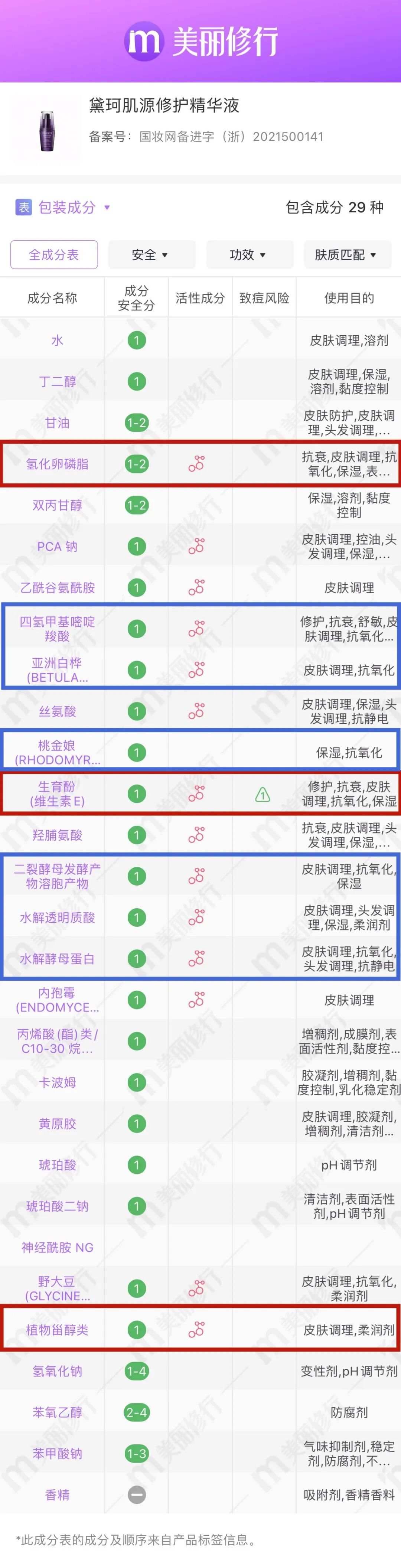 它这次升级主要在成分上下了狠功夫,新旧两版成分表的变化还是蛮大的。