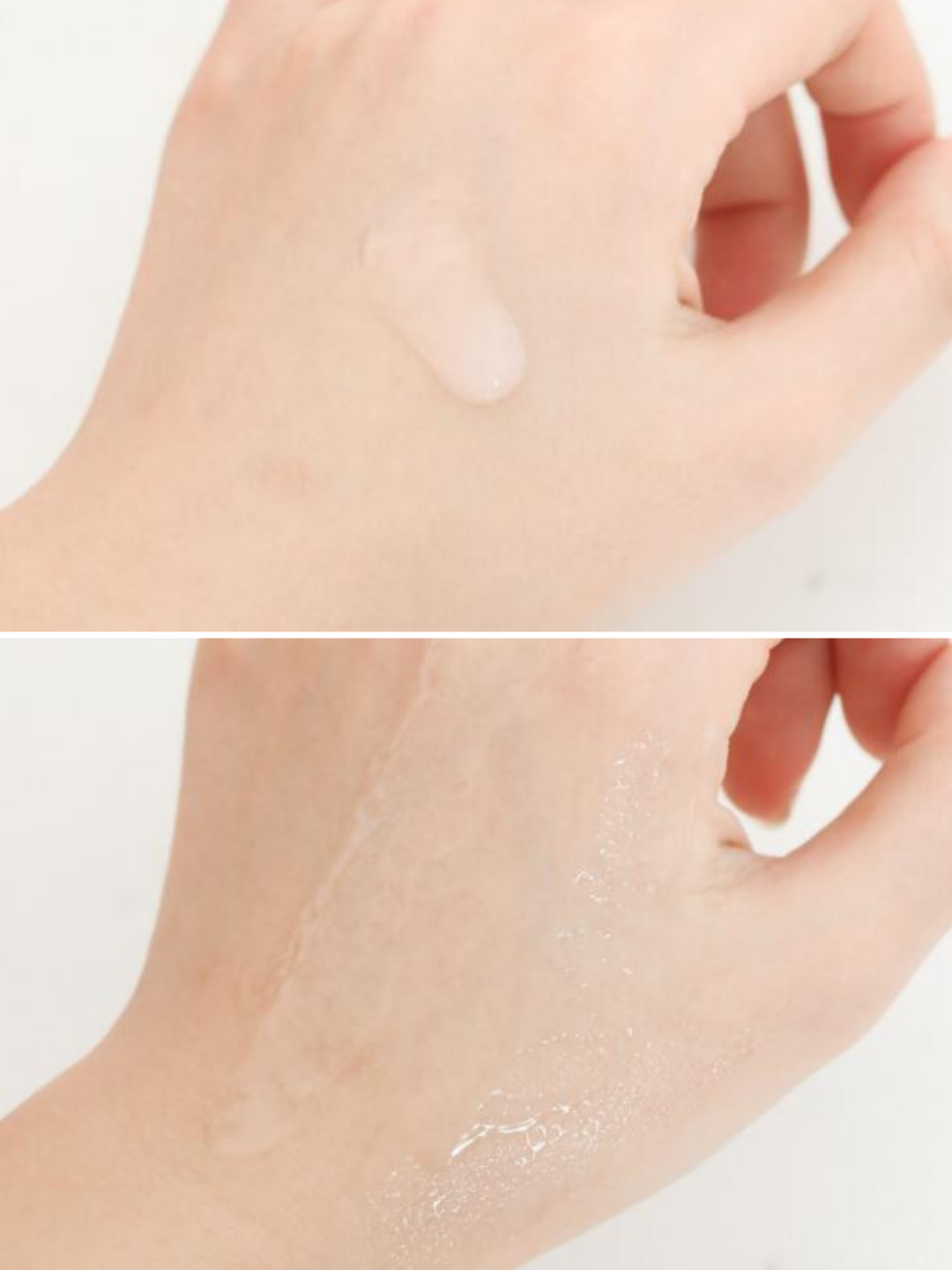 新版与旧版的质地挺像的,都是水润清透的蛋清质地,推开的时候也很顺滑,而且我感觉它吸收的速度比旧版更快一些。在脸上没啥存在感,早晚用都可以,老粉们放心冲就是了。