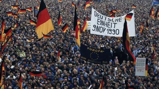 随着柏林墙倒塌事件的发生,东德和西德即将迎来统一的历史时刻。