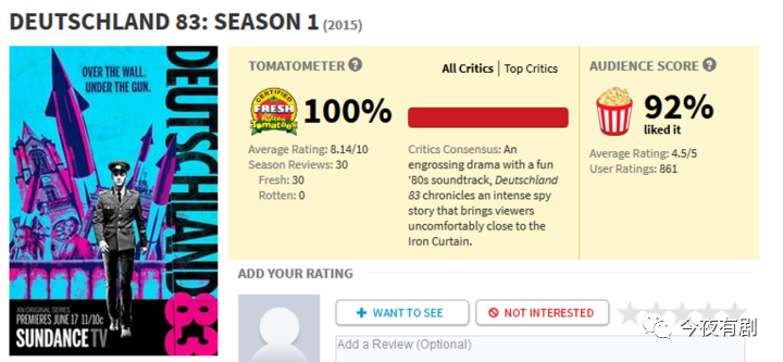 因此成为烂番茄2015年度Top 10 TV show榜单中唯一一部非英语电视剧。
