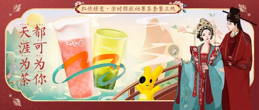 天刀携手美团美食、CoCo、腾讯游戏人生,特别定制“红情绿意·宋时锦”联名果茶套餐,将于8月4日正式上线美团美食与美团外卖!