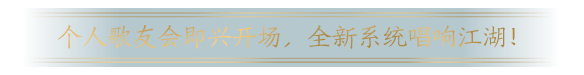 厌倦了插旗切磋,想要以歌会友?觉得同心系统甜度还能提升,情歌对唱产糖自销?又或是想在帮派聚饮时开启个人演唱会?全新自由演唱玩法为你递上话筒,环天涯巡演即刻启程!