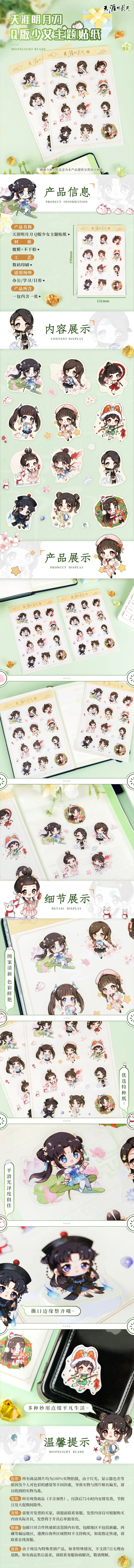 本期上新的刀刀主题贴纸以十二款天刀华裳为主题,Q萌的少女跃然于纸面~优选特种纸张,印刷清晰,平滑光泽度俱佳,少侠们想好贴在哪里了吗?