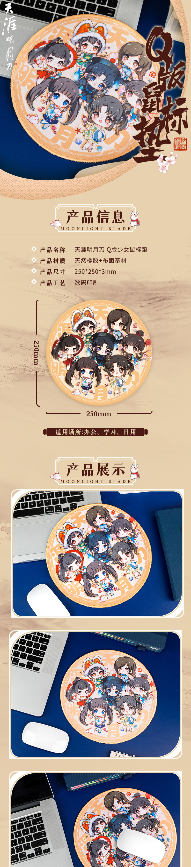 底面更有橡胶防滑纹路,金兰再也不用怕我打本手滑啦~用着刀刀鼠标垫,开启这场酣畅淋漓的江湖之旅吧!