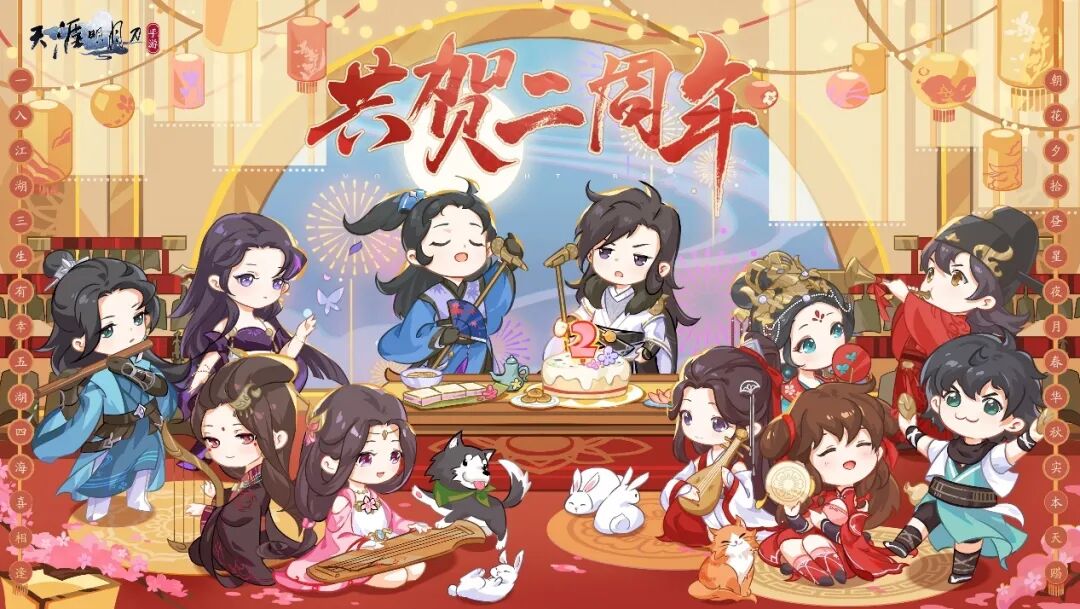 双枫崖上幸会群侠,承蒙诸位不弃,相携走过两载寒暑。又逢天赐佳节,亦是周年庆典,青铜主题音乐会带来跨次元、沉浸式视听盛宴,向国风致意。多重庆生福利满满,快快登录游戏,查收多重心动好礼。