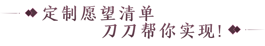 为刀刀庆生,刀刀与你一同许愿!10月14日起,将根据少侠两年来的江湖历程发放指定数量的“祝福值”用于选择不同价值的梦想清单物品。邀请好友为你的梦想清单装封,将有机会获得手机、平板电脑、拍立得…以及丰厚的实用道具奖励,更有机会豪取大量天赏积分或绑点助力少侠庆贺佳节!