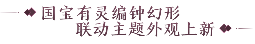 礼有五经,乐有五音。华夏风韵,系于此身。以编钟器灵为设计主题,全新联动主题外装【天衣·钟灵】华美上新!还原自传统深衣服式,玄色为底,凤鸟夔纹,秦风汉韵跃然其间。