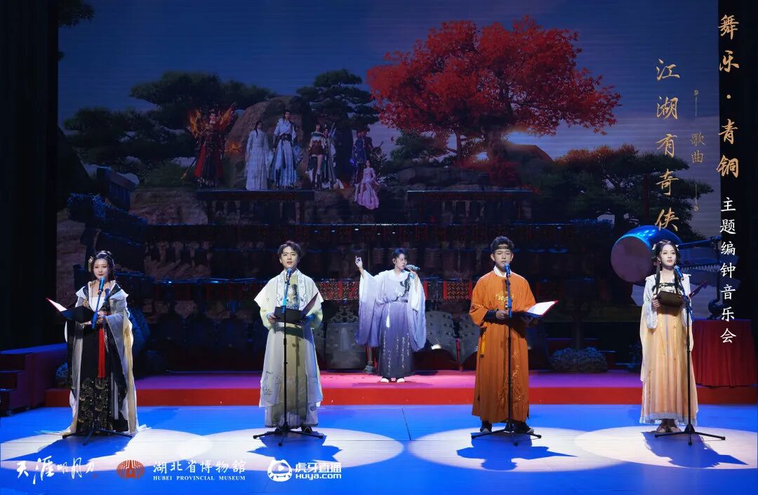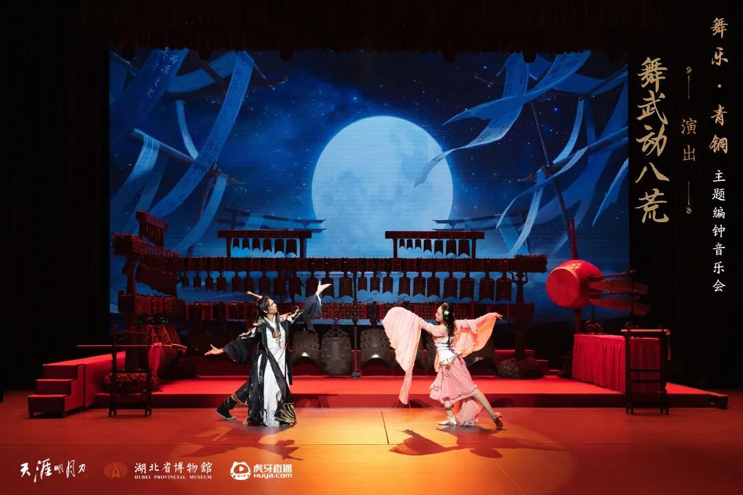 来自湖北省博物馆编钟乐团的老师们,以复刻版曾侯乙编钟新编演绎《时光》《沧海踏浪》等曲目,为无数少侠勾勒出江湖梦的《明月天涯》也得以在编钟的鸣奏下,再度悠扬于天地之间。