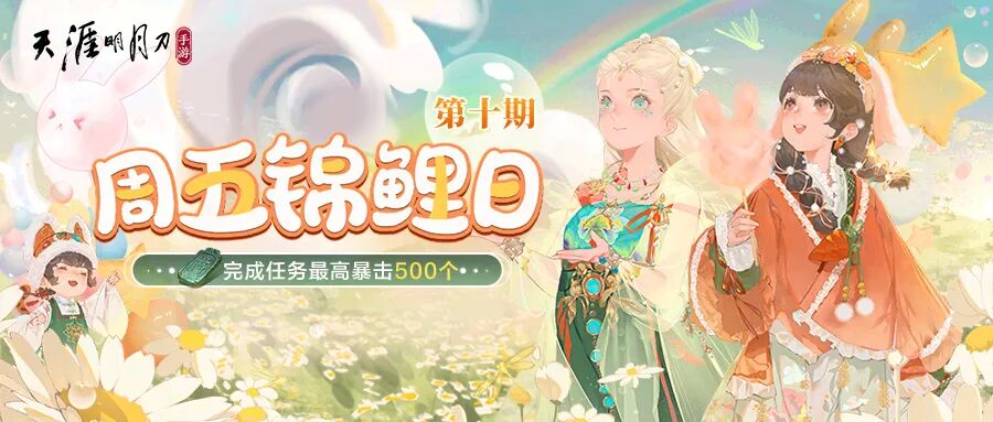 本期奖池为「铸神令」,完成指定任务即可参与抽奖,最高可暴击500个!少侠扫描下方二维码,或通过天刀手游公众号菜单栏【福利锦囊-周五锦鲤日】即可前往参与。分享本活动还可得150绑点好礼~