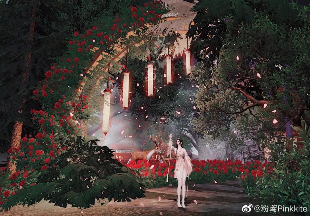 天空中星光点点,夜幕下烟花绽开,华美壮丽的梦中宫殿,如今就真的出现在眼前。想必建造之人也是一样的风雅之人~