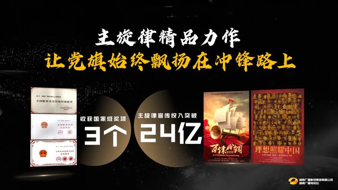 2020年以来,湖南广电收获了抗击新冠肺炎疫情和脱贫攻坚三个国家级大奖,在主旋律宣传上的直接投入达24亿元,让党旗始终飘扬在冲锋路上。