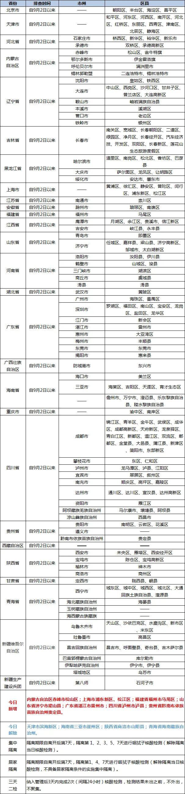 (中、高风险区具体地点可通过“国务院客户端”微信小程序查询)