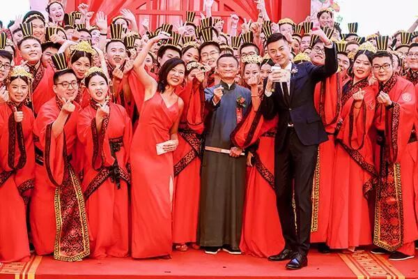 马云在总部举行的公司员工集体婚礼上说出这番话,聆听他的员工夫妻们都身着汉服,在这个其乐融融、充满酒桌气息和家长气息的氛围里,诉诸传统文化、彰显家庭关怀的意味是很明显的。