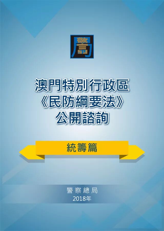 為回應社會發展形勢,革新民防事務的管理及運作、以及有效引導民間支援力量,澳門特別行政區政府現正就制定《民防綱要法》進行公開諮詢,諮詢期由2018年6月28日至8月11日,有關諮詢文本可以到政府入口網站等連結到警察總局專題網頁下載或者到指定地點索取。歡迎各界人士透過專題網頁、出席諮詢會或者以電話、郵寄等方式發表意見。