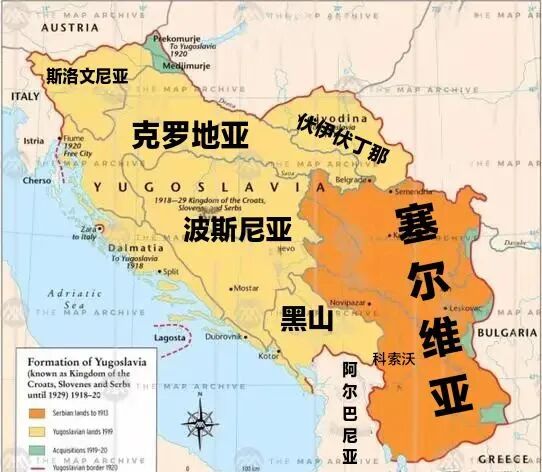 这场持续4年的战争最终让奥匈帝国分崩离析,塞尔维亚趁机控制了奥匈帝国境内的克罗地亚、斯洛文尼亚等斯拉夫人聚居区,成立了南斯拉夫王国。