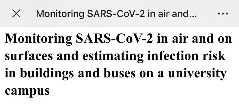 1.Zhang, X., et al., Monitoring SARS-CoV-2 in air and on surfaces and estimating infectionrisk in buildings and buses on a university campus. Journal of ExposureScience & Environmental Epidemiology, 2022.