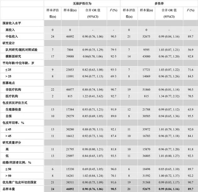 3.亚组分析未发现包皮环切与风险补偿间统计学关联