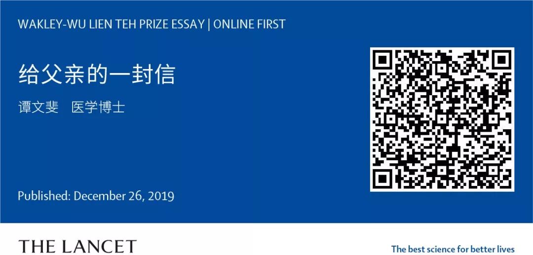 柳叶刀长期关注和支持中国医生的工作与患者照护,并于2019年发起首届“威克利-伍连德奖”(Wakley-Wu Lien Teh Prize),以致敬两位医界楷模。自奖项发起至10月30日截稿,我们共收到超过130篇投稿文章。12月26日,首届“威克利-伍连德奖”结果揭晓。获奖文章为中国医科大学附属第一医院麻醉科医生谭文斐撰写的《给父亲的一封信》,文章讲述了两代中国医生的行医故事。获奖文章中文全文已在柳叶刀官方网站上线。