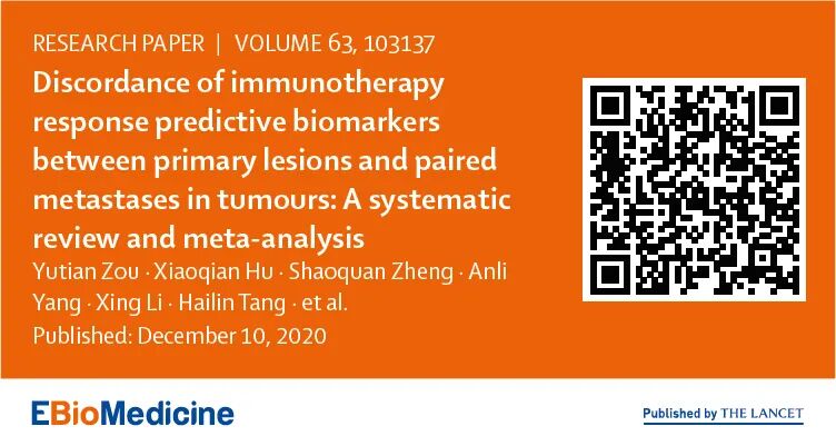 肿瘤原发病灶和转移瘤免疫治疗反应预测标志物的不一致性:一项系统回顾和荟萃分析