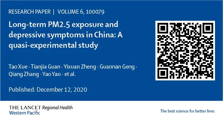 中国人群中PM2.5长期暴露和抑郁症状的调查:一项准实验研究