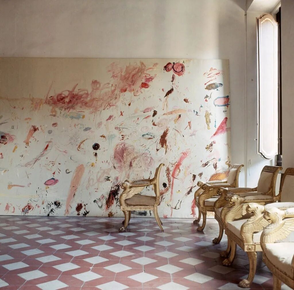 上世纪五十年代,对未来迷茫无措的赛·托姆布雷离开纽约去往罗马找寻新的创作线索。从那时开始,托姆布雷便将自己的美国艺术基因逐步融入他在罗马的家中。评论家们认为托姆布雷在罗马的居所有着与美国艺术前卫精神不符的“富丽堂皇”(grandeur),对此托姆布雷只是轻描淡写的回复,选择如此“宏大”的宅邸仅仅只是为了能装得下他数量众多的巨幅画作。
