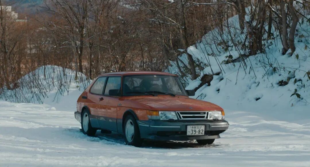 影片皑皑白雪中的红色Saab 900