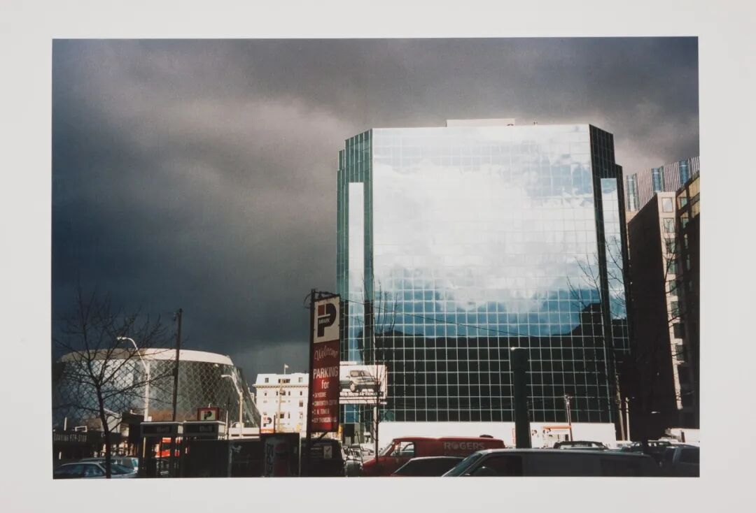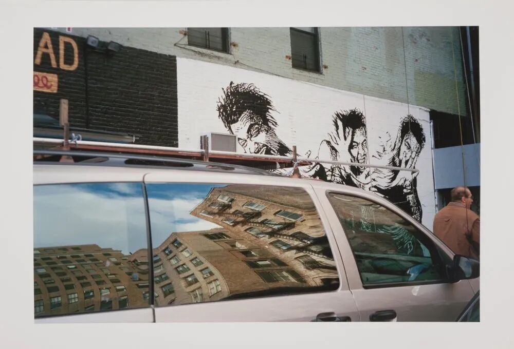 鲍德里亚在其作品中也常流露出对于“反射”这一现象的浓厚兴趣。一杯水倒映着巴黎巴士底广场的倒影,这与他1997年在纽约的肖像画相呼应——一幅街头壁画与在小型货车有色侧窗的镜子中弯曲显现的公寓相遥望。“(摄影)是不是很像美国车的后视镜,扭曲了视觉却给观者一个真实的警告?”