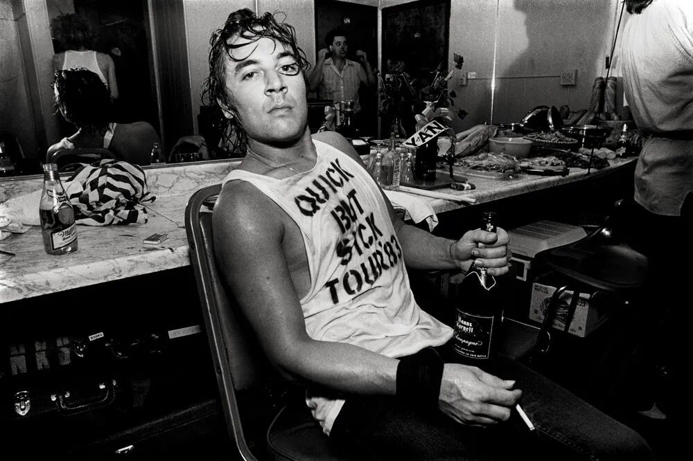斯坦利的室友、乐队鼓手Paul Zahl在Mab Fab后台,1983