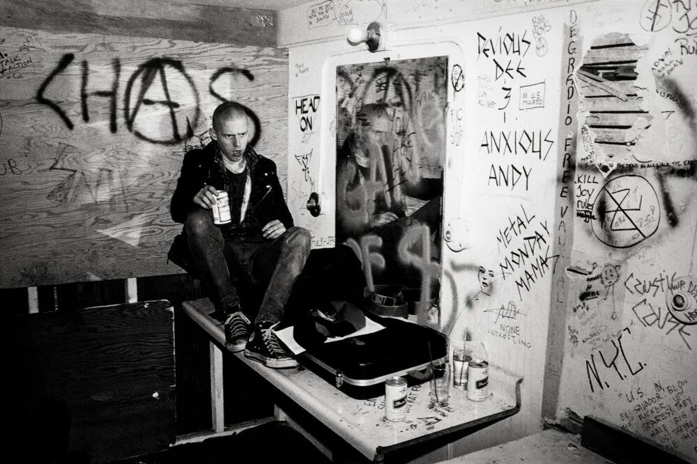 斯坦利·格林(Stanley Greene)从1975年开始拍摄音乐人。与其在家用肥皂剧打发掉周六夜晚,这位摄影师选择拿起徕卡相机出门采风。之后这便成为了一切的开始,摄影师每晚都会出门捕捉一些“朋克场景”。很多人都认为斯坦利应该多拍摄一些与他文化有关的内容,“毕竟我是个黑人”,但斯坦利对于“追本溯源”并无兴趣,反倒是对于他生长环境极为陌生的朋克元素,那些嘈杂的噪音让他欲罢不能。“我必须跟随它(朋克)。”斯坦利所有交往密切的朋友都或多或少与朋克文化有关,因此拍摄变得非常自然。