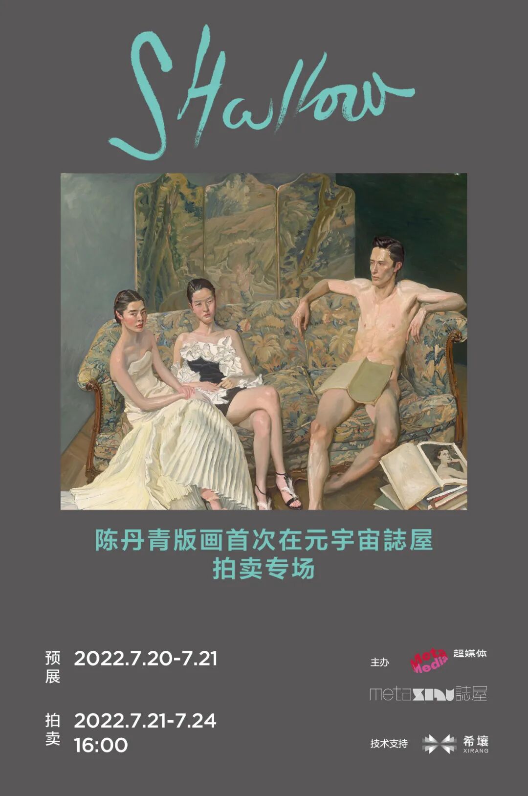 2022年7月20日由超媒体控股有限公司(以下简称超媒体)旗下元宇宙誌屋(Meta ZiWU)主办的“Shallow-陈丹青版画首次在元宇宙誌屋拍卖专场”正式上线,是为陈丹青版画作品在元宇宙世界的首次拍卖。此次项目由百度希壤提供技术支持,是继超媒体控股有限公司与BV百度风投共同出资成立元邦科技有限公司(以下简称元邦科技)之后的双方针对元宇宙内容进行的又一项目合作。